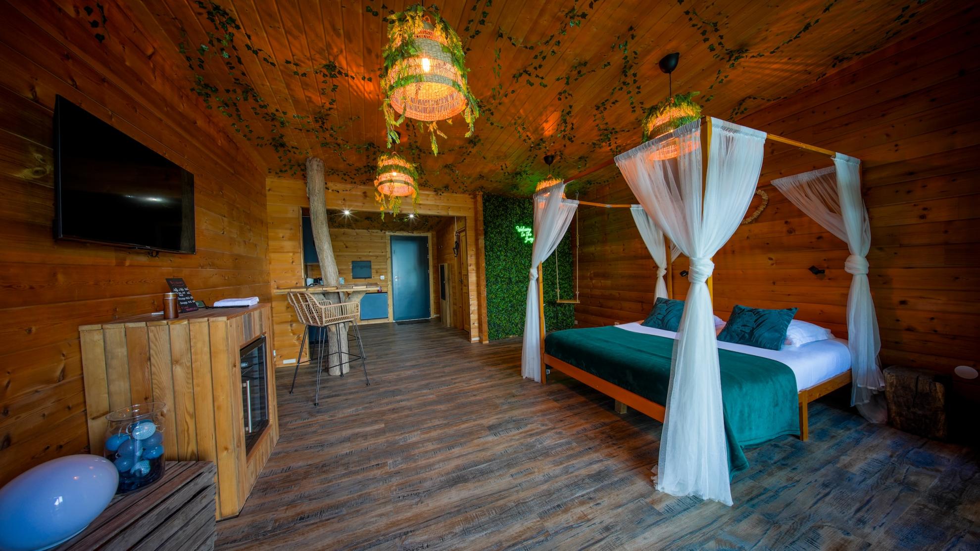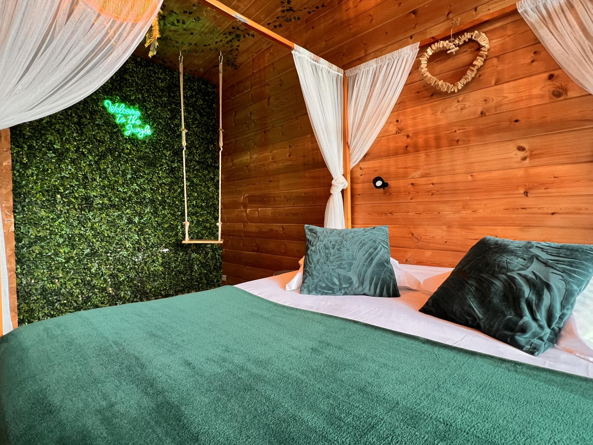 Evasion 100% nature garantie dans notre lodge Le Jungle. Décoration suprenante et ambiance très romantique ... Profitez d'un moment magique